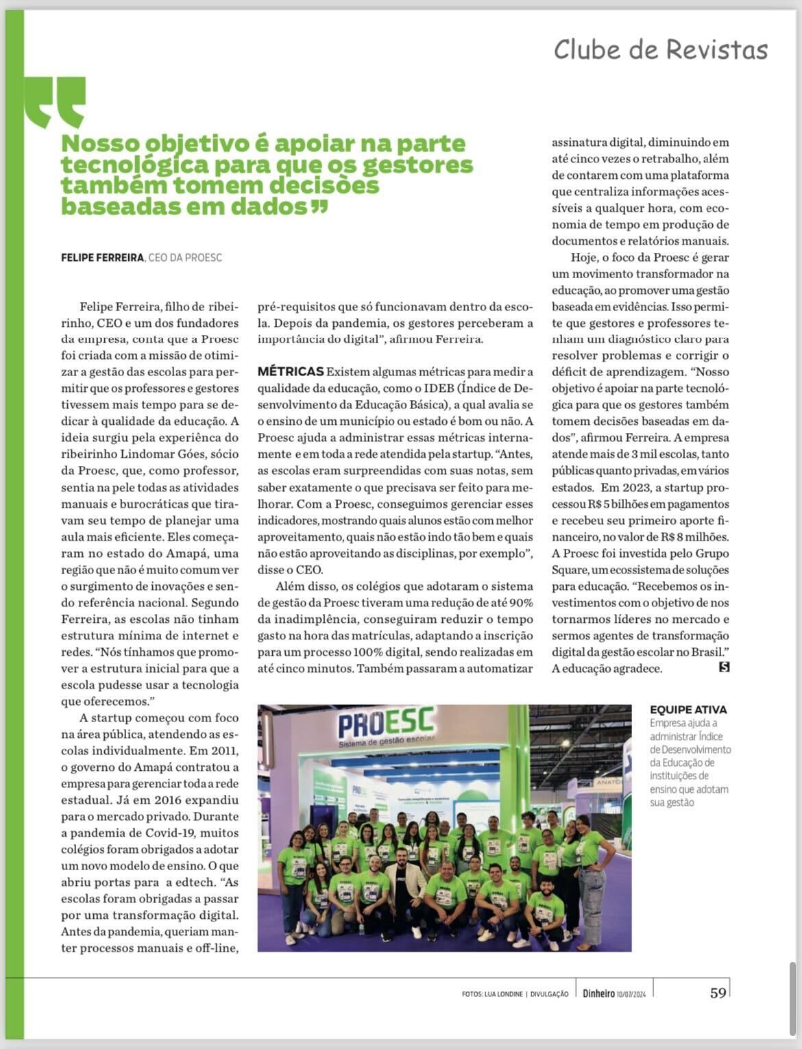 A Proesc, cliente PinePR, foi destaque na IstoÉ Dinheiro! 🏆✨